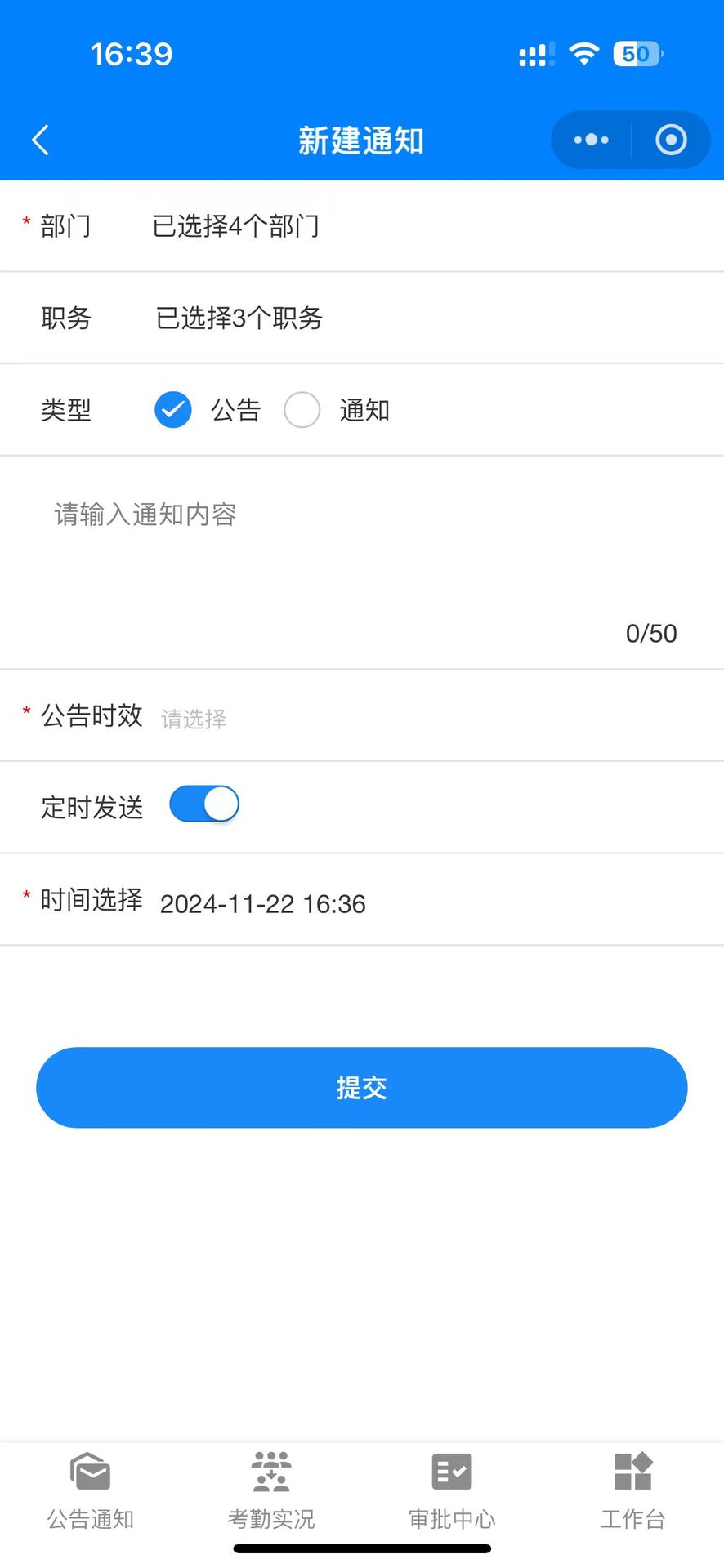 支持全员公告推送,收到公告后移动端会置顶滚动展示公告内容