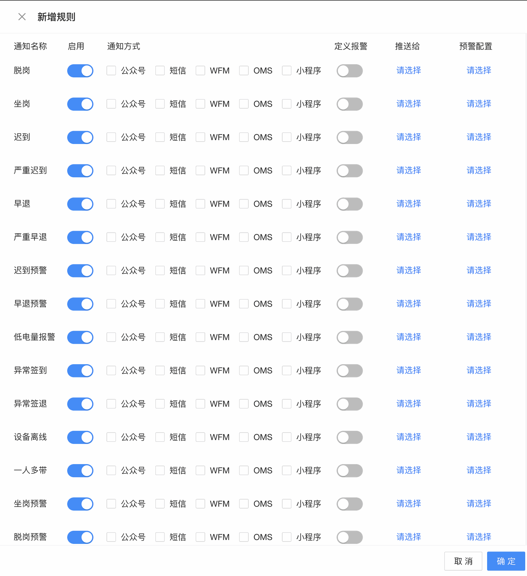 事件和报警可以选择推送给不同的职务、角色或人员,按需配置。